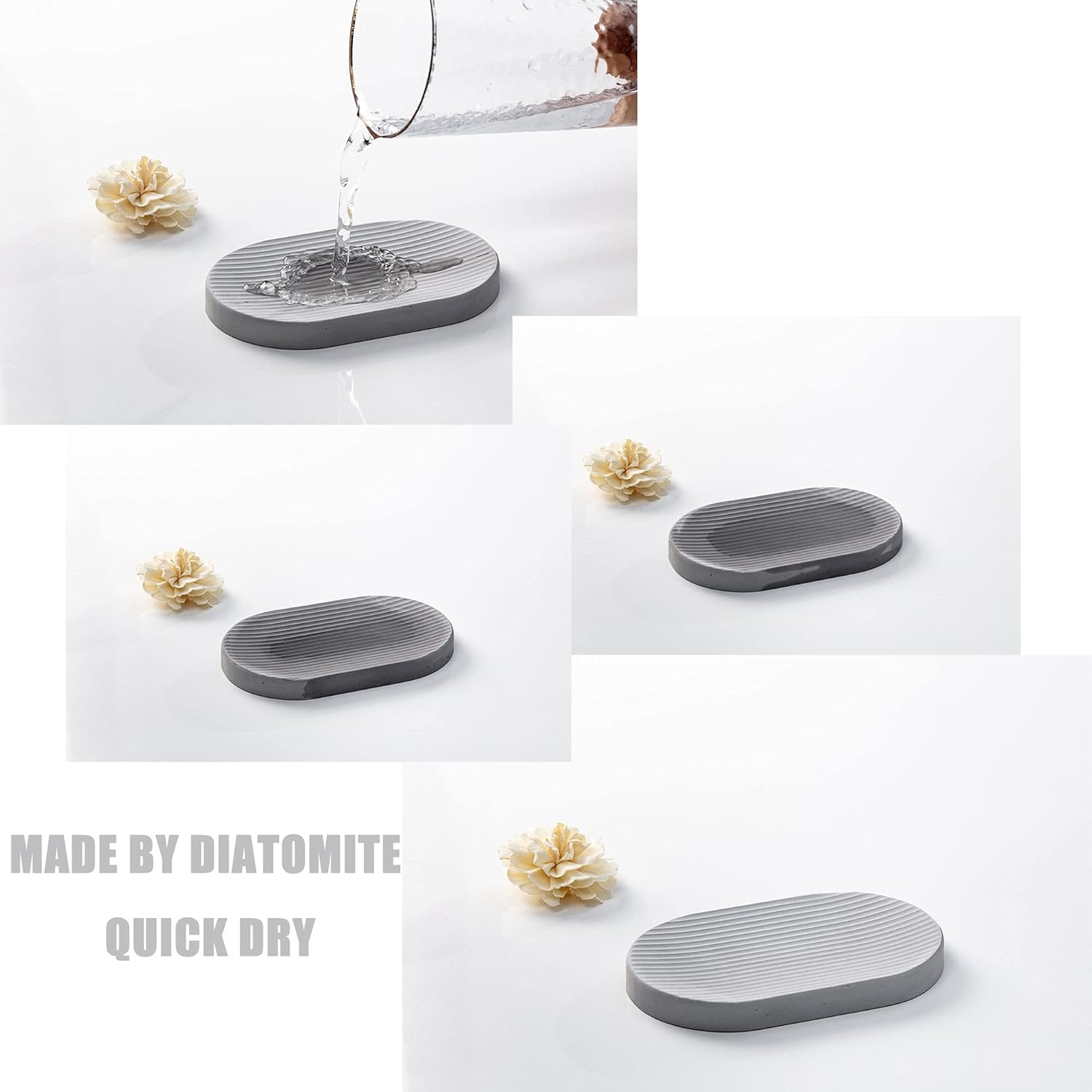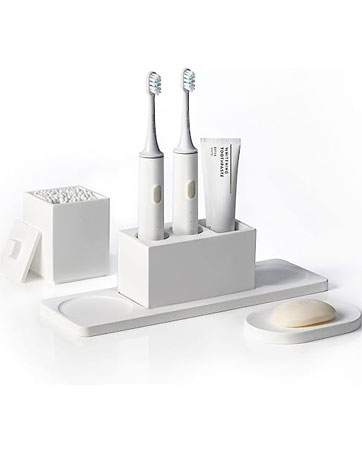 Bathroom Accessory Set Grey, Diatomite, Bathroom Accessories Countertop Complete with Electric Toothbrush Holders, Soap Dish Set